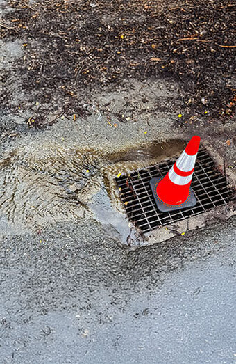 Rapid unblocking of stormwater pits and grated inlets clogged with leaves, dirt, or debris during storms to prevent backflow and surface flooding issues.